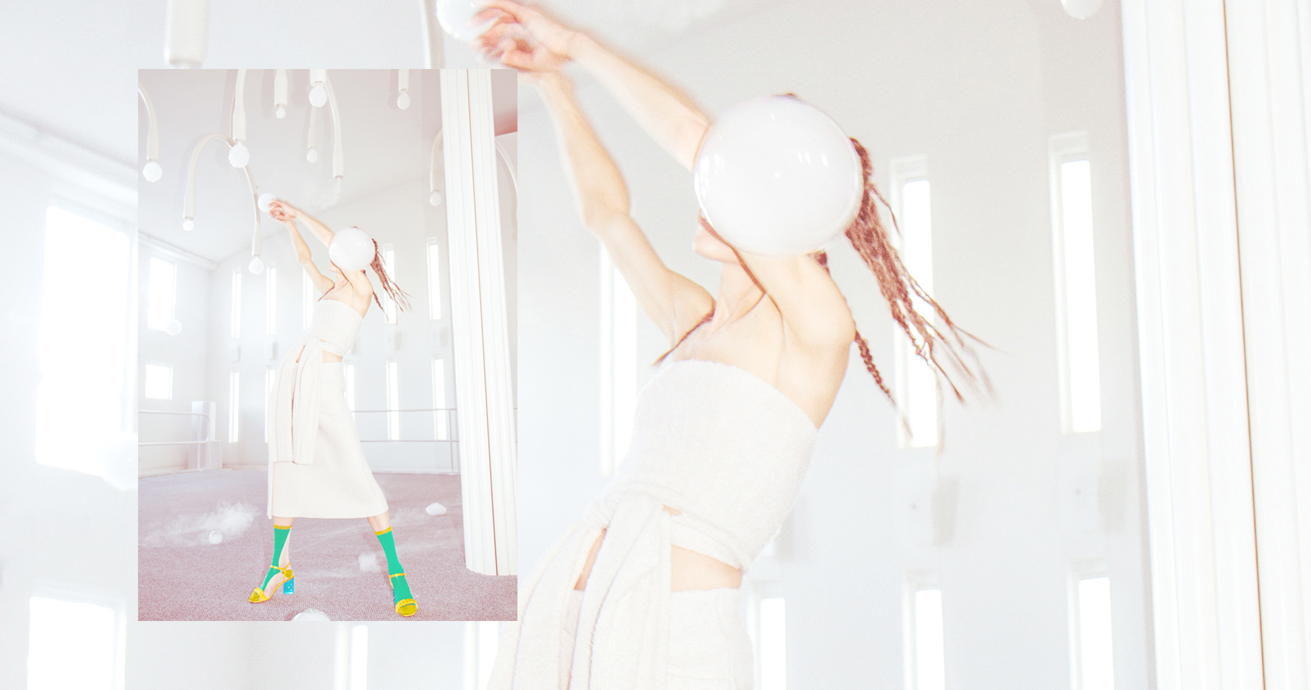 How to exist in art deco tropics by the sea. The intention is a call to action, to be a participant, to travel to see art in order to take a piece. An ephemeral fling masked in connectivity. A message in a bubble, scent is present, the color and texture are for you a misty mystery. Suspended interactions between art, architecture, design and clothing offer vast and various openings for a diverse audience to seek and engage. What could be more urgent in our world’s climate than this, it is at the very core of the images I enact and create.