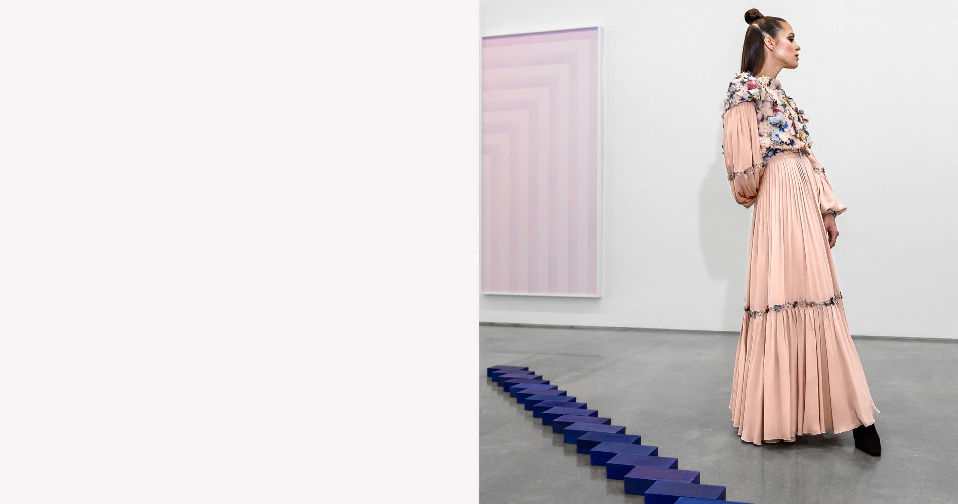 Highlighting form captured in shifting light, makeup artist Samantha Dametta used Les Beiges Healthy glow multi-colour in Duo N°01 & N°02  for ephemeral luminosity. Soft spectrum Chanel Les 4 Ombres in Tisse Smokey shapes the eye, intensified with Écriture De Chanel Eyeliner Pen Effortless Definition in Noir. An element of color play appears on the lip, a matte purple sun using Rouge Allure Velvet Intense Long Wear Lip Colour in La Romanesque for the first look dissipates into a hot scarlet pink sky, Rouge Allure Intense Long-Wear Lip Colour in Exaltée for lasting impression.