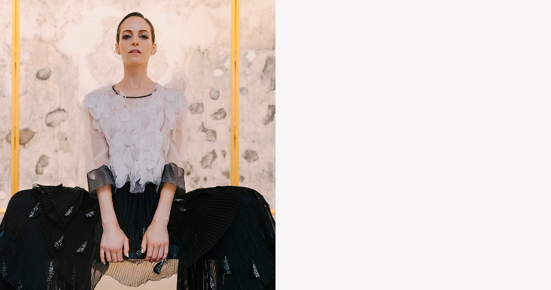 Just as dressing I have found beauty as a way to express and discover my various selves on the radical love quest to integrating and arriving at the electric center of my being. This season Lucia Pica for the Fall 2019 Chanel Makeup Collection slices through any limiting preconceptions associated with Noir et Blanc revealing the opposing shades as they are to infinite nuance. The allure is in experimentation, to pair with Kimsooja’s dramatic entry the lip is stamped in Le Rouge Duo Ultra Tenue in the perfectly descriptive shade of Intense Rosewood. A hint of Rouge Allure Liquid Powder in Invincible and Bois De Nuit is added to accentuate the line underneath the corner of the eye and pulled straight outward, Rouge Coco Gloss in Crystal Clear coats the brow bone with multi-dimensional shine. Melting into The Altarpiece by Nadia Kaabi-Linke a layered effect was created on the lid using Les 4 Ombres Eyeshadow in Noir Sûpreme as a base then building a delicate patina using Ombre Première Top Coat in Penombre and Le Gel Pailleté as a transparent shimmering veil/glazed varnish. Rouge Allure Liquid Powder in Timeless topped with Rouge Coco Flash in Lumière adds a soft pronounce to the lip. With Naiza Khan’s Heavenly Ornaments the skin is fresh and illuminated using the Voyage De Chanel palette of blush and powders. Rouge Allure Liquid Powder in Évocation mixed with Bois De Nuit leaves the lip rosy and sculpted. All looks the eye is smoldered with Le Volume Ultra-Noir de Chanel Noir Intense mascara, a black pigment so rich it creates a khôl liner effect reminiscent of that used in Ancient Egypt.